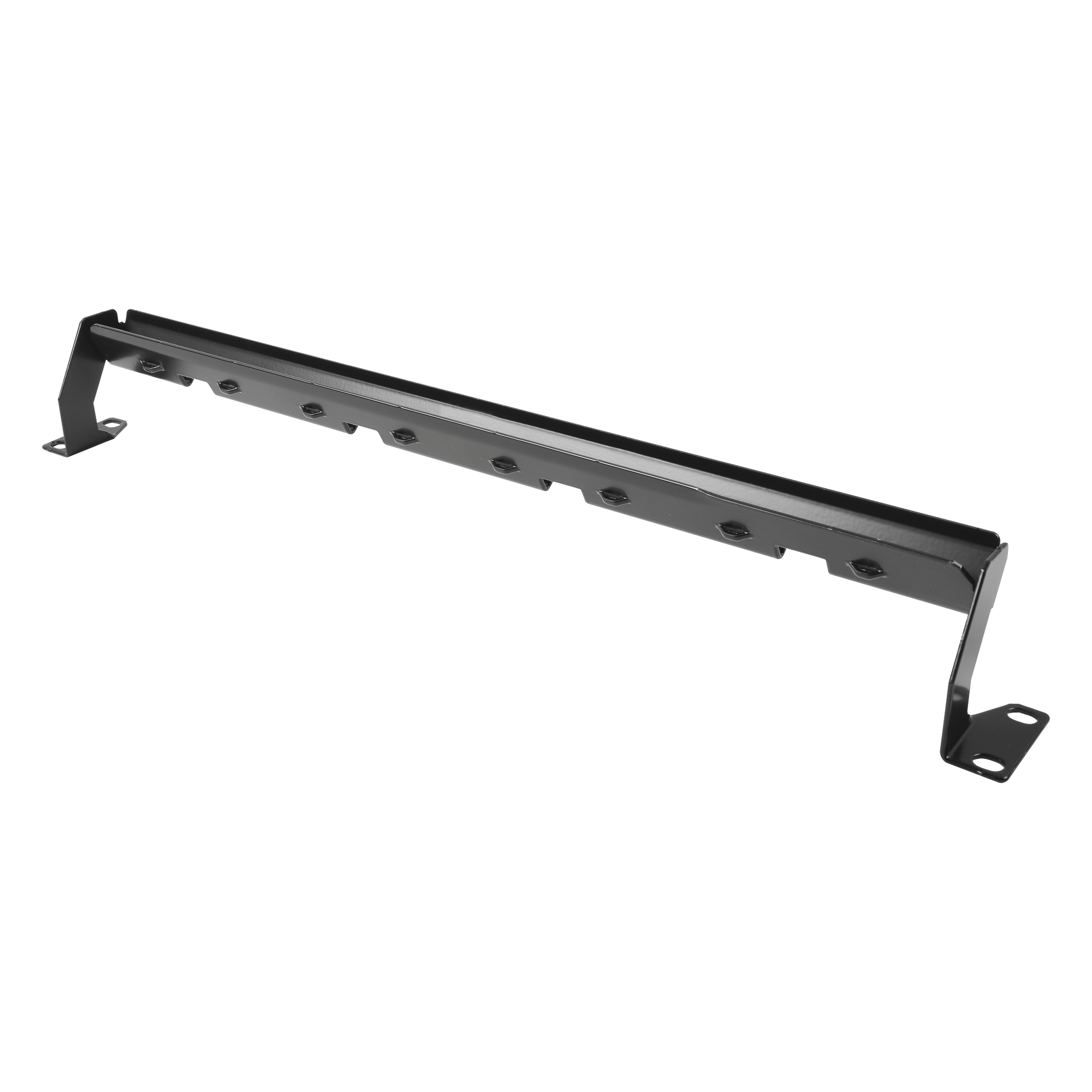 Característica diseño en ángulo "forma de V" innovadora, que proporciona el enrutamiento directo y suave de los cables al panel de conexiones desde arriba o por debajo. Cuenta con ojales para asegurar las ataduras de cables (incluidos) y recortes para la inserción de ganchos administradores de cables (disponible por separado).