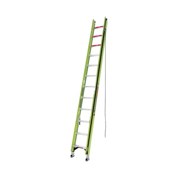 El riel verde hi-viz de Little Giant es uno de los tonos de color más fáciles de detectar para el ojo humano. ¿Por qué una escalera debe ser hi-viz? Algunas de las caídas más catastróficas son causadas por personas que caminan o conducen hacia una escalera de extensión en uso.