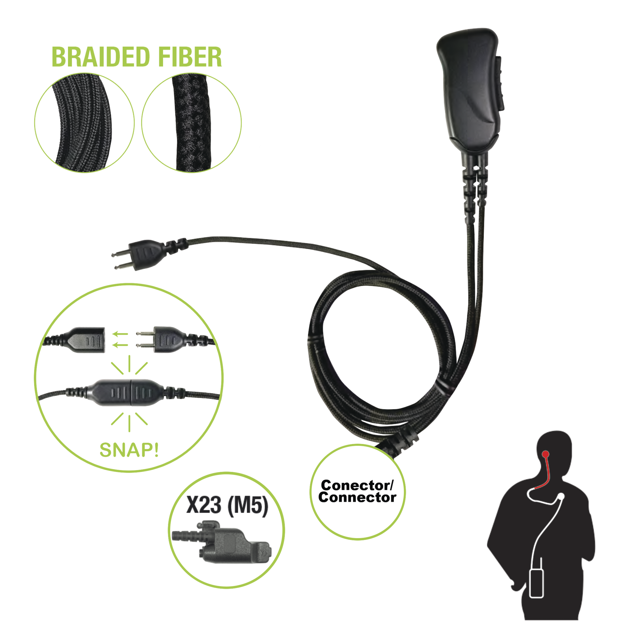 Micrófono con cable de fibra trenzada serie SNAP compatible con conector Motorola Serie Jedi.